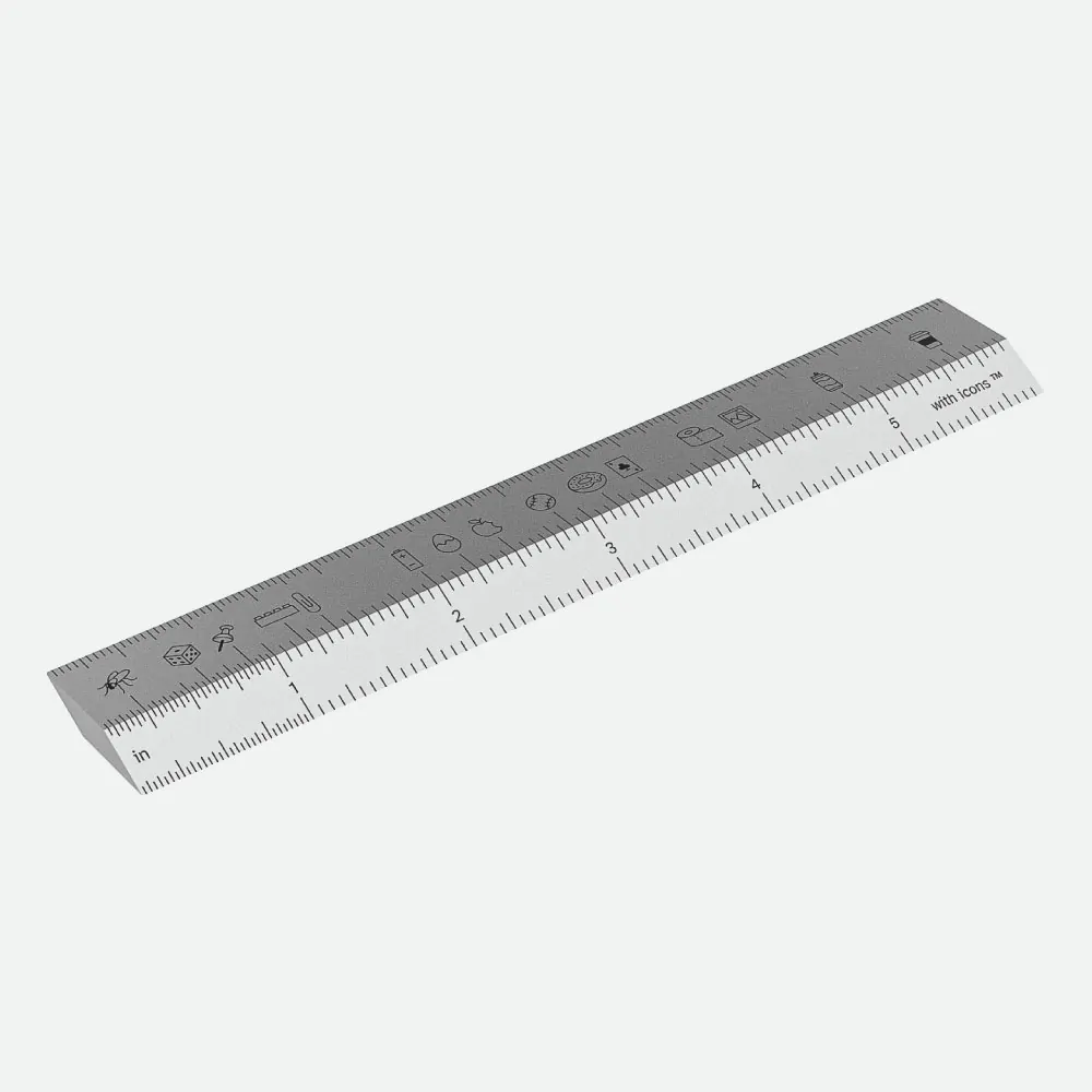 An aluminum ruler with icons that help you understand size in a more relatable way. Each icon shows a familiar object that you can use to compare measurements or explain sizes to others.